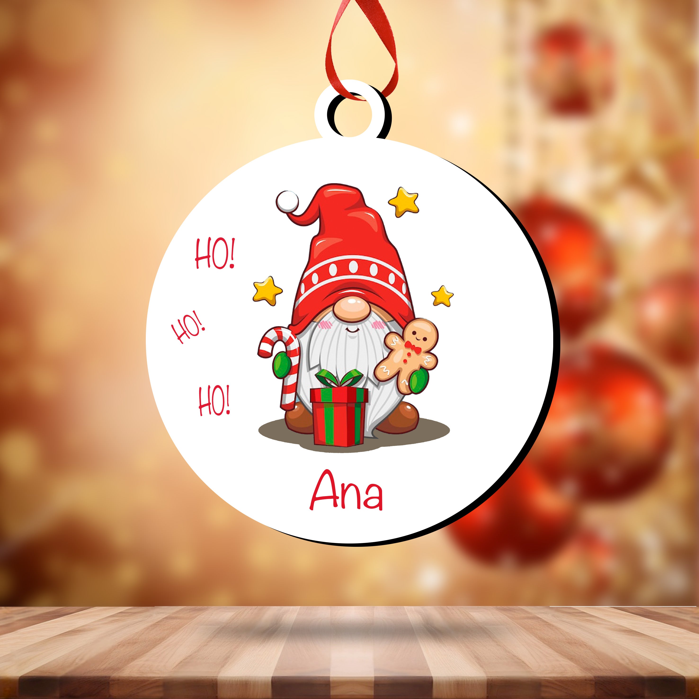 Bolas de natal Gnomo, madeira com nome - Especial