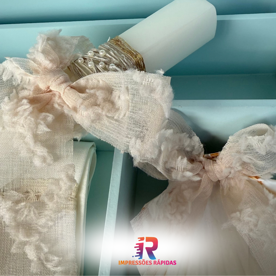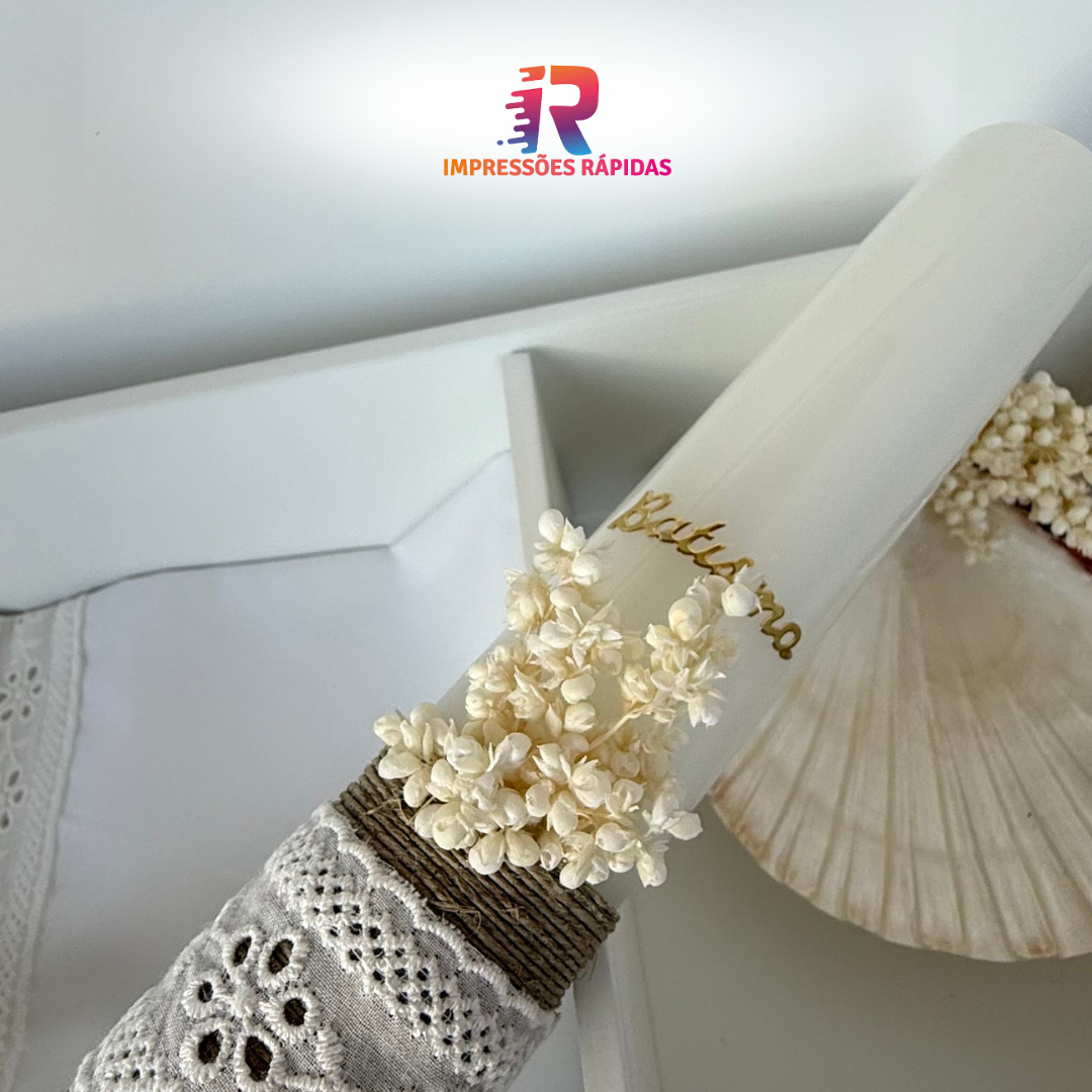 Perfeita para guardar a vela, o pano e a concha, com um toque pessoal que reflete a importância deste momento.