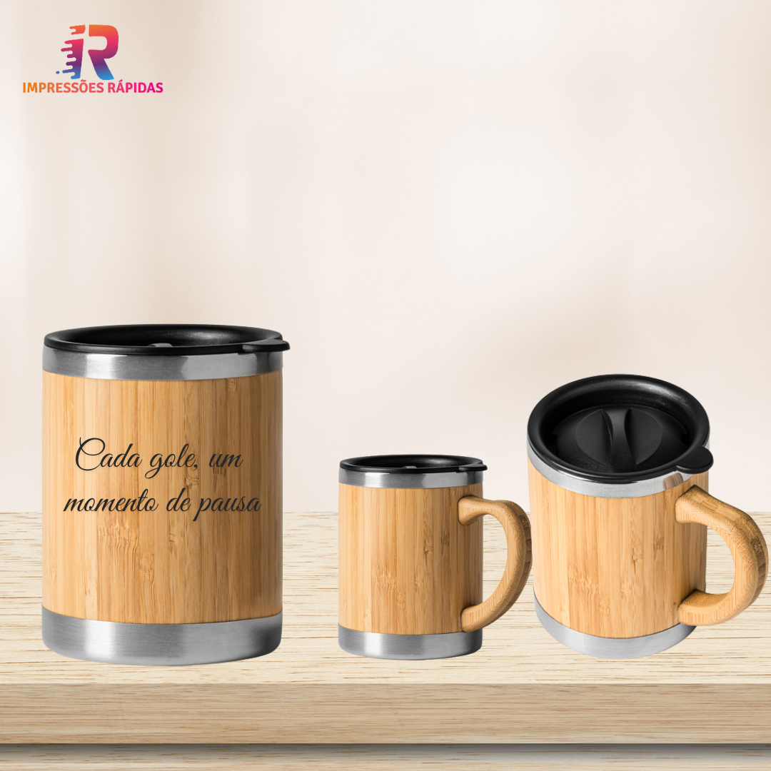 Caneca de aço inoxidável de revestimento duplo com exterior em bambu